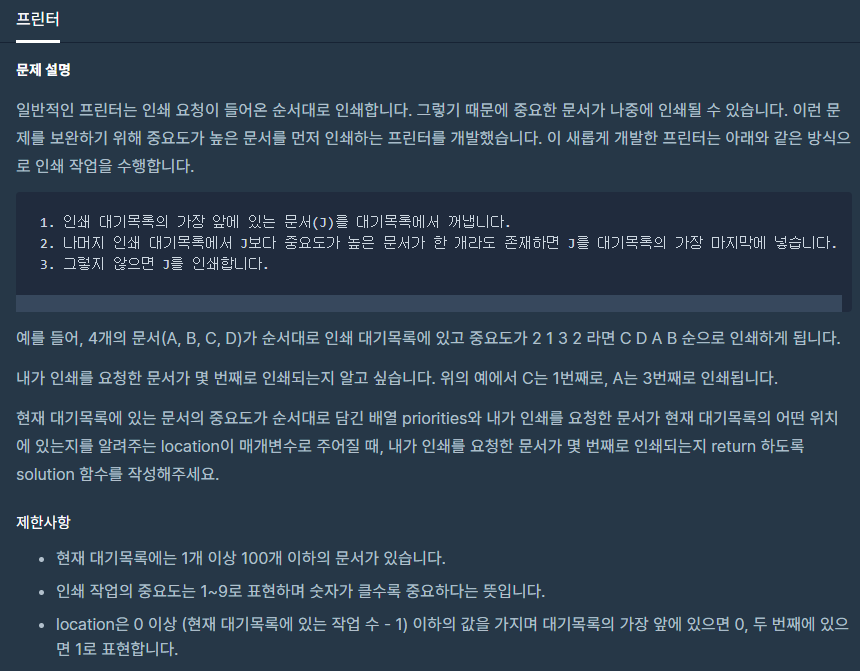 코딩테스트 연습 - 프린터