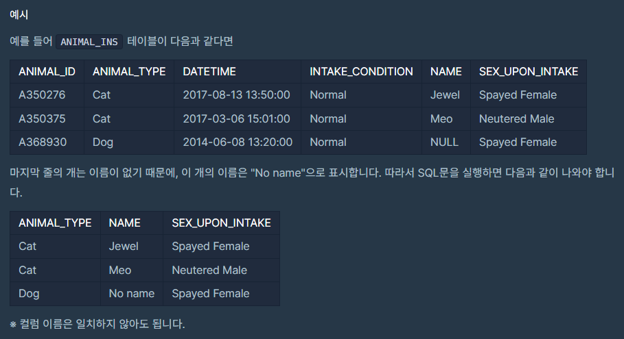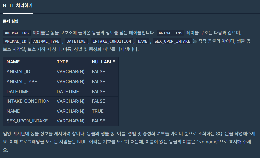 코딩테스트 연습 - NULL 처리하기