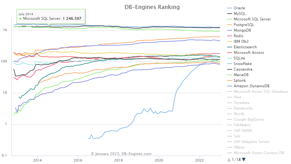 - 2차원 구조 모델(열 : 속성, 행 : 튜플, 데이터)을 기반으로한 수평적 구조를 사용, 테이블 형식으로 데이터를 저장합니다. 각 테이블들은 많은 행과 열로 구성되며, 테이블은 구조화된 데이터를 저장하기 위한 엄격한 구조를 제공합니다.
