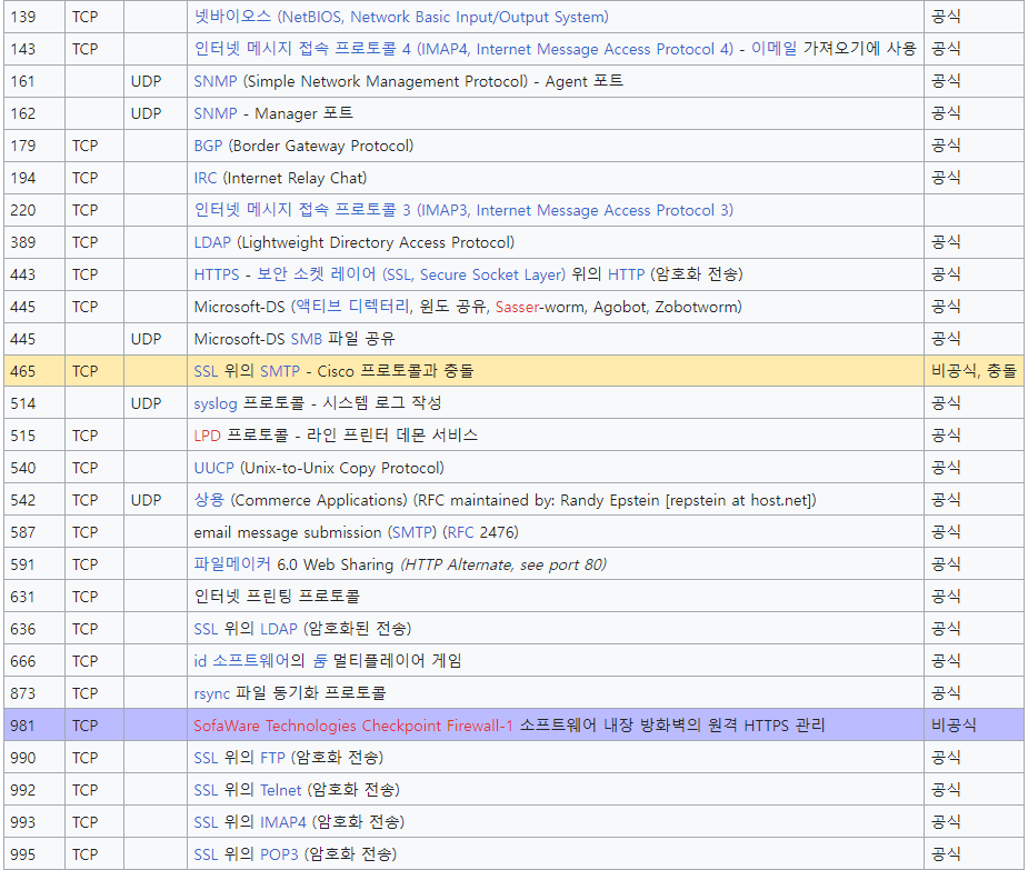 - 0번 ~ 1023번: 잘 알려진 포트 (well-known port)
