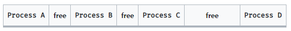- 여유 공간이 충분함도 불구하고 이러한 여유 공간들이 조각으로 흩어져 있어(Scattered Holes) 메모리에 프로세스를 적재하지 못해 메모리가 낭비되는 현상
