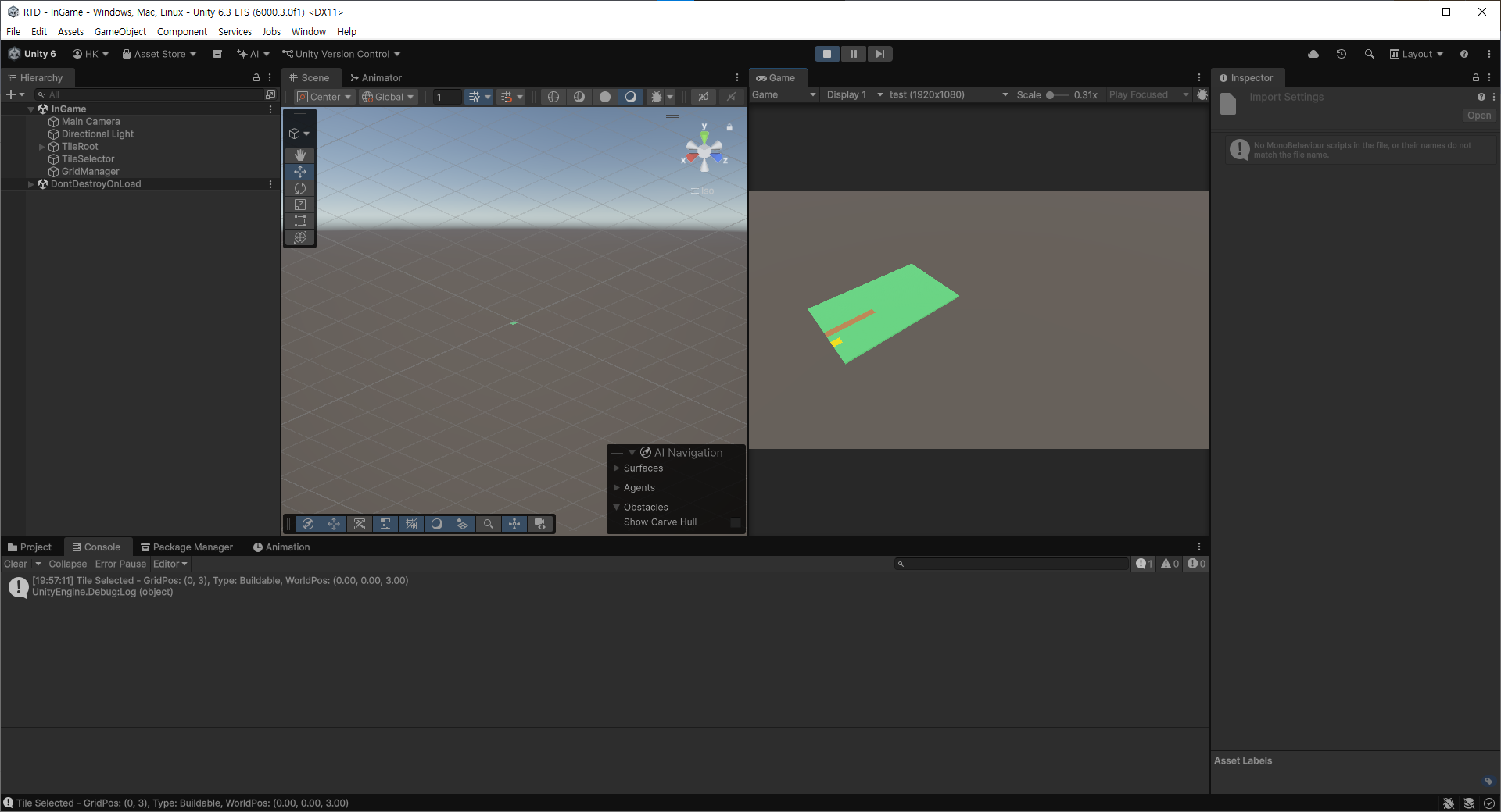 - 레이캐스트를 이용하여 타일을 선택 할 수 있도록 하는 기능 구현