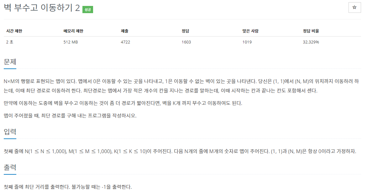 14442번: 벽 부수고 이동하기 2