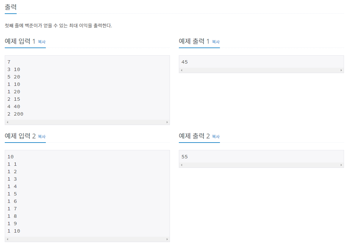 첫째 줄에 백준이가 얻을 수 있는 최대 이익을 출력한다.