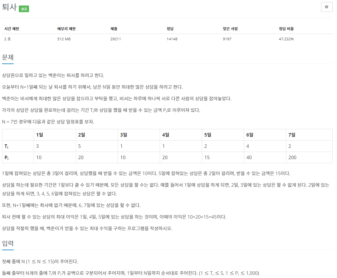 - 첫날부터 시작하여 일을 하는 경우와 일을 하지 않는 경우로 나뉘어 계산을 진행한다.